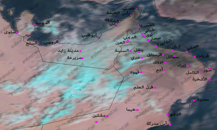 تدفقات السحب العالية والمتوسطة تصل ل البريمي و أجزاء من غرب الظاهرة وشمال الباطنة