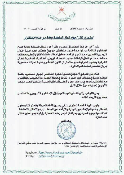 رد: استمرار متابعة / تأثر شمال السلطنة ودولة الإمارات بمنخفض جوي 30 / 11 - 2 / 12 / 2012م ...(2)
