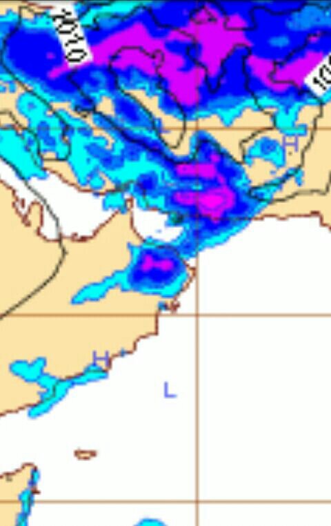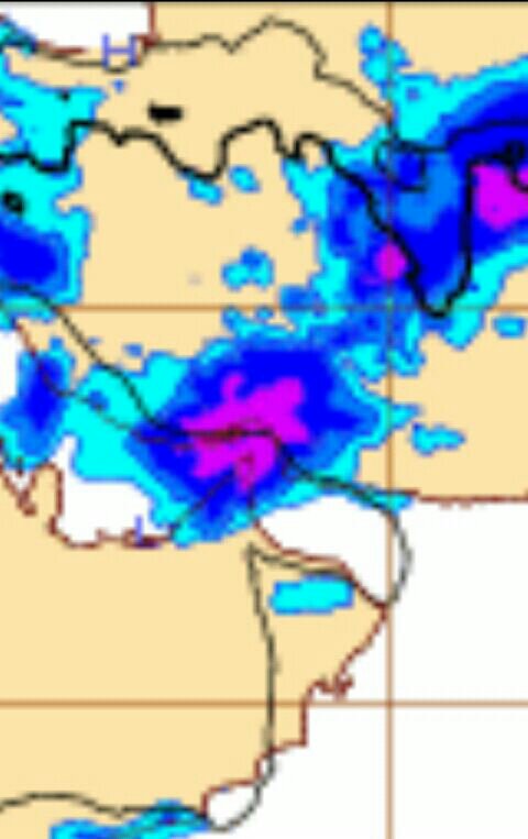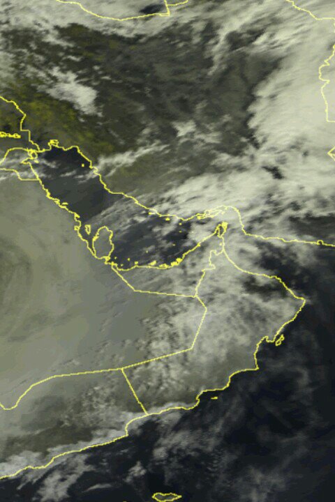 يتوقع استمرار ظهور الخلايا الماطره على مياه الخليج العربي و تقدمها بتجاه مسندم الى فتره المساء...بعد ذلك يتسع النشاط الى الحجر الغربي و شمال الباطنه بأمطار رعديه متفاوته في الغزاره خلال الليل..والله اعلم..
