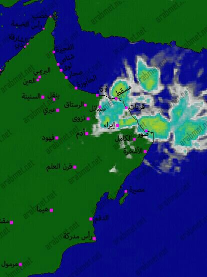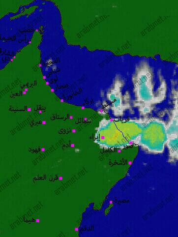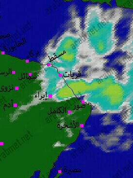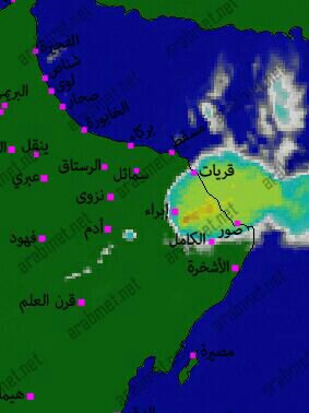 قطع سحب ركامية بشرق ولايه ضنك والرادار يرصد تكاثف امطار خفيفه