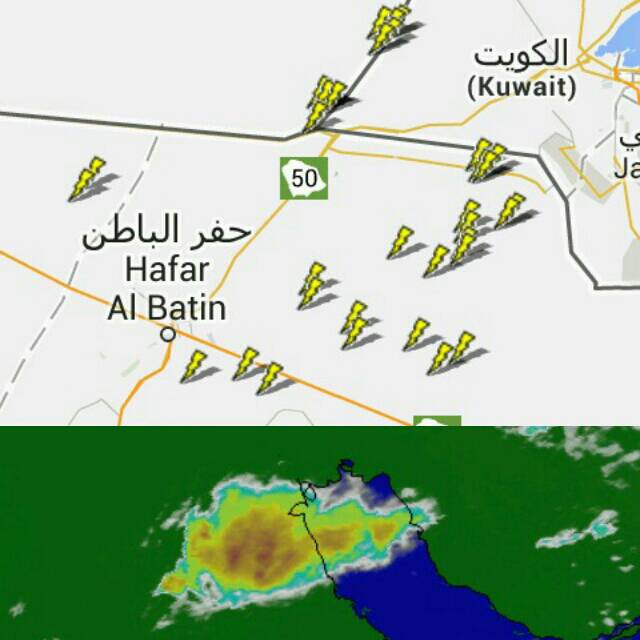 أستمرار نشاط الخلية الرعدية على أجزاء واسعة من حفر الباطن بالمملكة والحدود الكويتية والعراقية