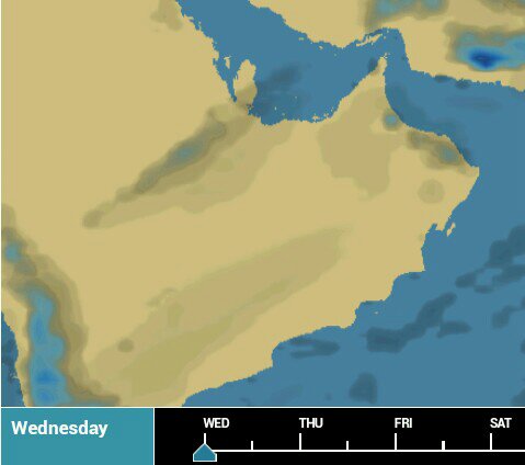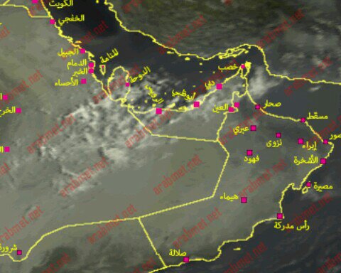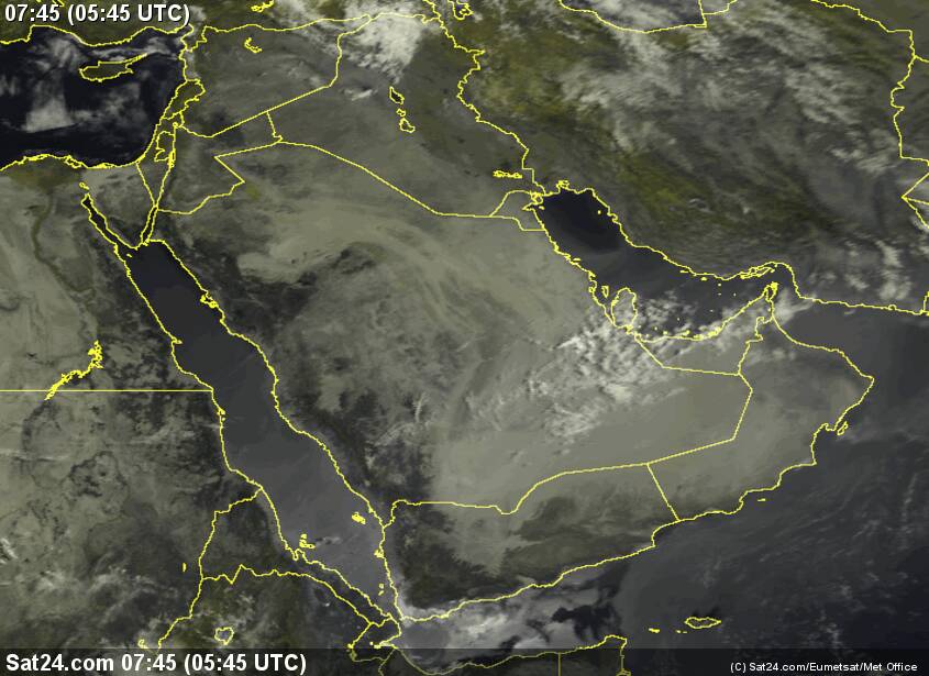 سحب متوسطة الأرتفاع تعبر بكل من قطر والأمارات وشرق السعودية وأقصى شمال عمان تعطي أمطار خفيفة متفرقة