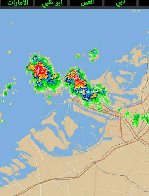 امطار غزيرة مصحوبة بحبات البرد بالعاصمة الاماراتية أبوظبي