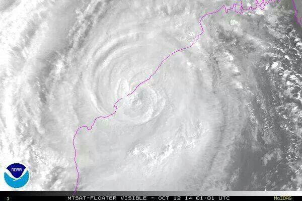 الإعصار هدهد لحظة دخول عين الإعصار الشواطيء الشرقية للهند