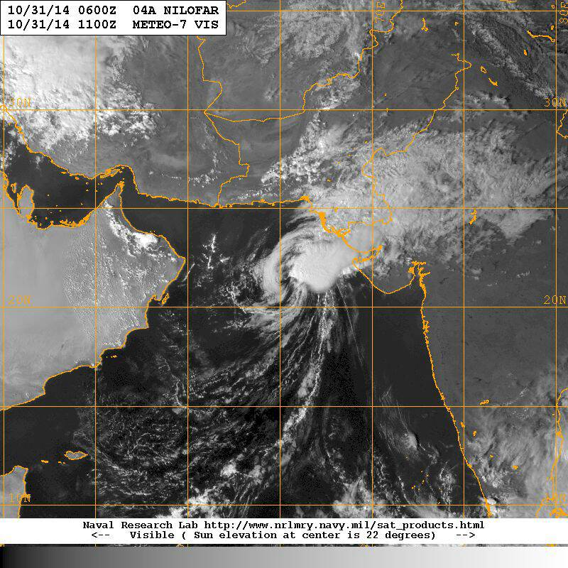 رد: متابعة الإعصار المداري (نيلوفر Nilofar ) في بحر العرب 22/10/2014