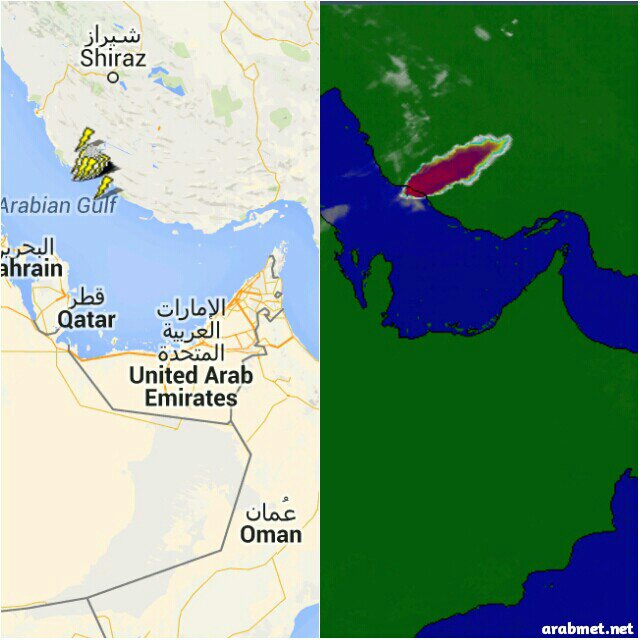 خلية ركامية رعدية نشطة على الساحل الإيراني بالخليج العربي