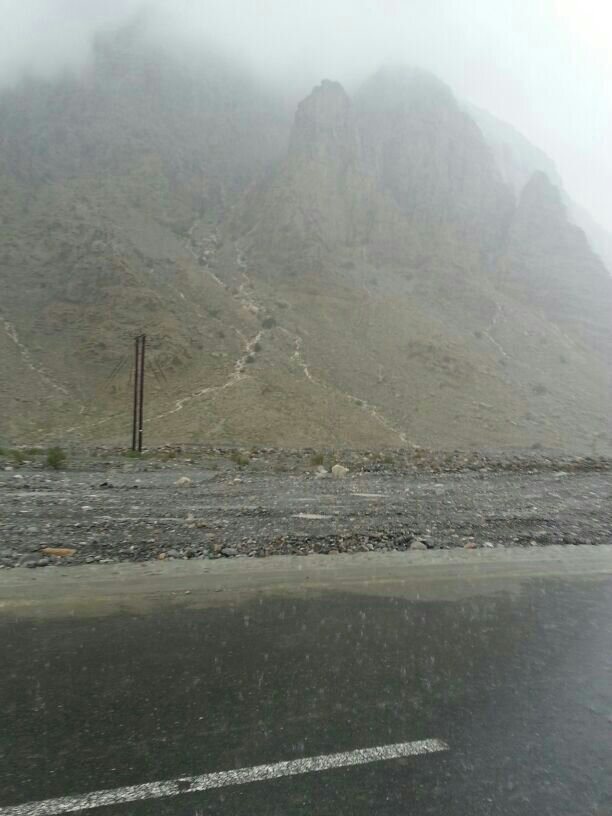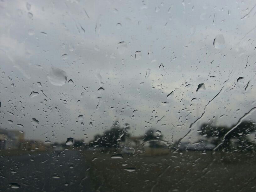 أمطار خفيفه مركز ولاية إزكي مع تواجد السحب المتفرقه وظهور قوس الرحمن جهة الشرق.