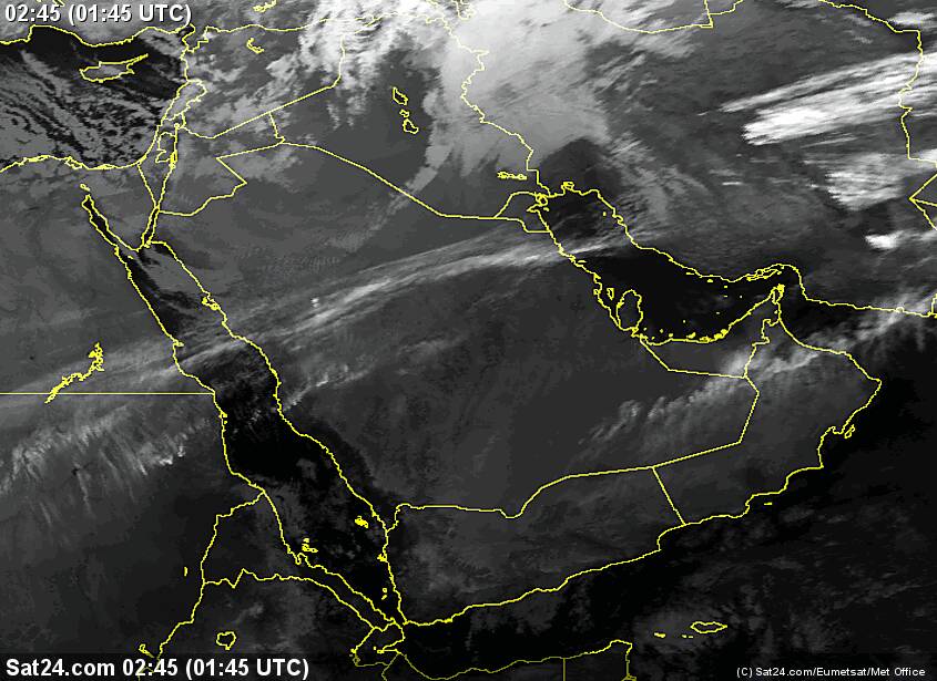 تدفق السحب العالية على الأجزاء الشمالية للسلطنة مع تواجد السحب المنخفضة على أجزاء من محافظتي ظفار والبريمي