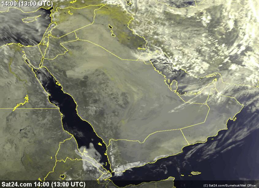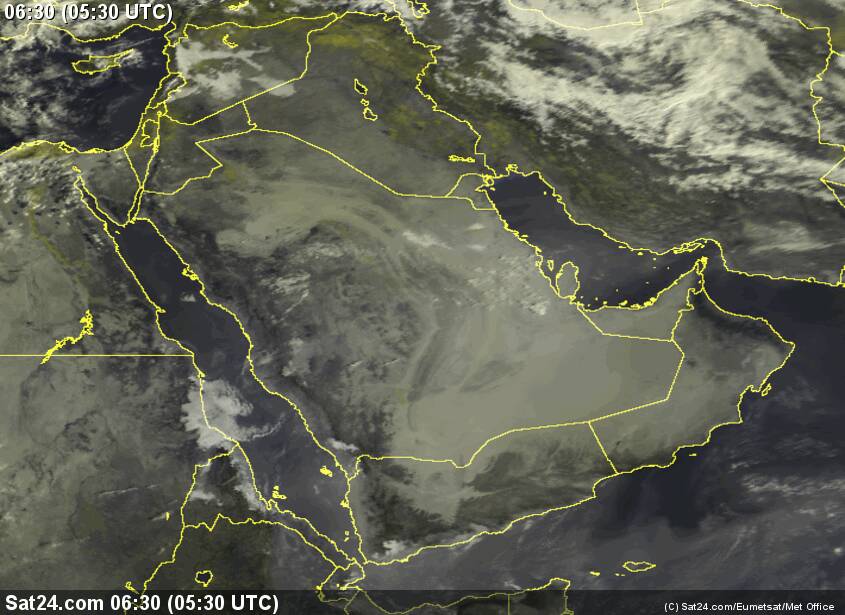تدفق السحب على سواحل بجر عمان وأجزاء من الساحل الجنوبي الشرقي مع جو مغبر نسبي على معظم محافظات السلطنة