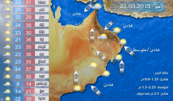 رد: متابعة : أحوال الطقس وحالات عدم استقرار في السلطنة والخليج العربي خلال شهر مــارس 2015م