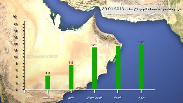 الأرصاد العمانية : ادنى خمس درجات حرارة تم تسجيلها اليوم صباحا في محطات الرصد بالسلطنة