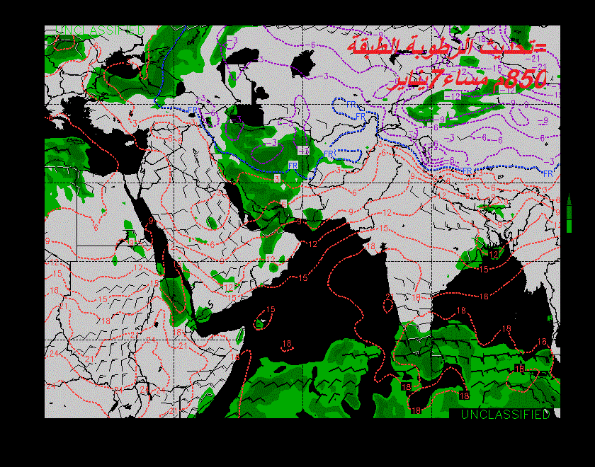 تشير اخر معطيات النماذج العدديه الى تأثر شمال السلطنة بأخدود منخفض جوي و ذلك من مساء يوم غدا الاحد..