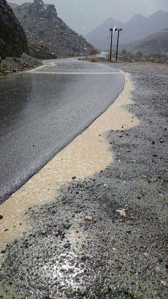 هطلت أمطار غزيرة عصر اليوم شمال غرب ينقل وسالت الشعاب والاودية