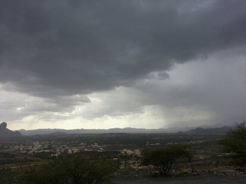 أمطار خفيفة على الحمراء ومتوسطة على أجزاء من الجبل