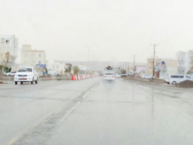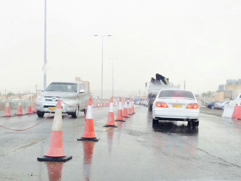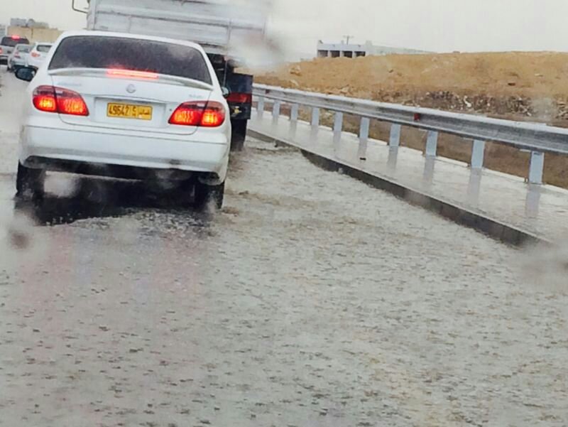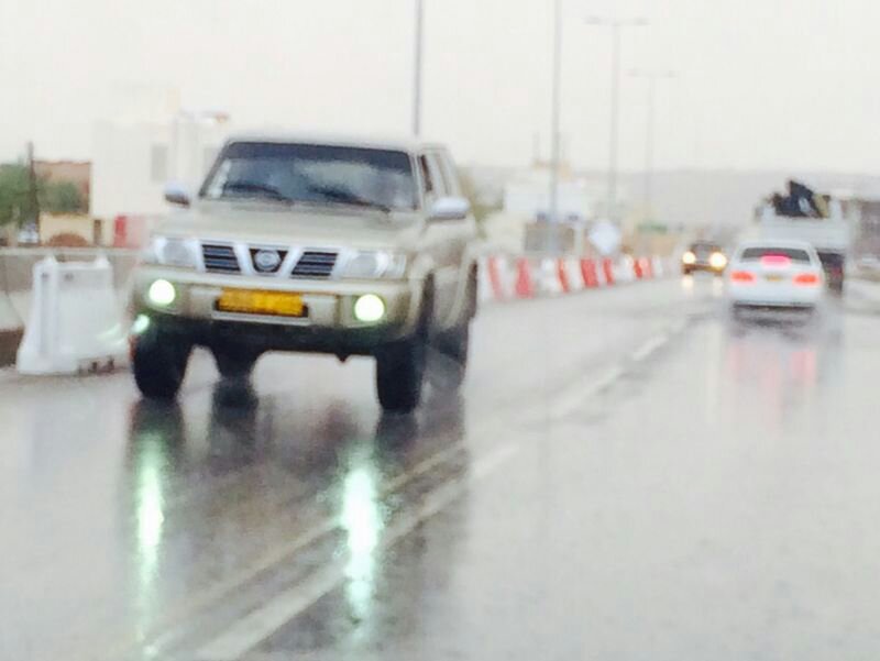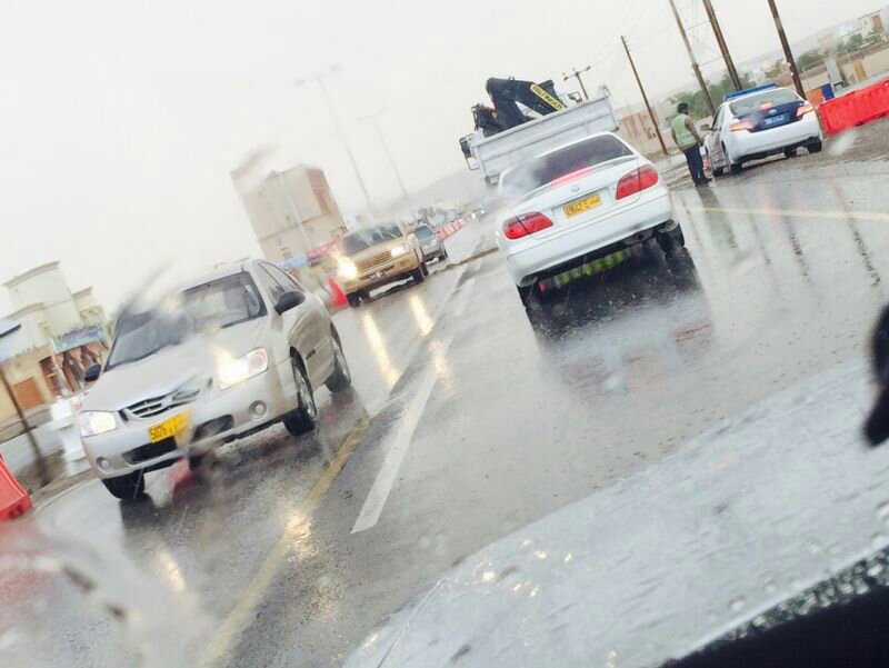 امطار غزيره جدا مع رياح هابطه والحركه شبه متوقفه الان طريق عبري حمراء الدروع