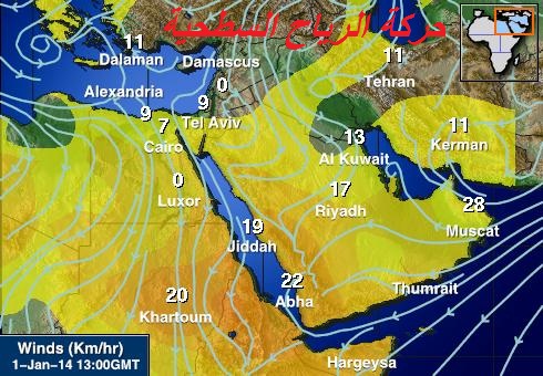 متابعة أحوال الطقس على السلطنة ودول الخليج والوطن العربي خلال أول شهر يناير من العام 2014م