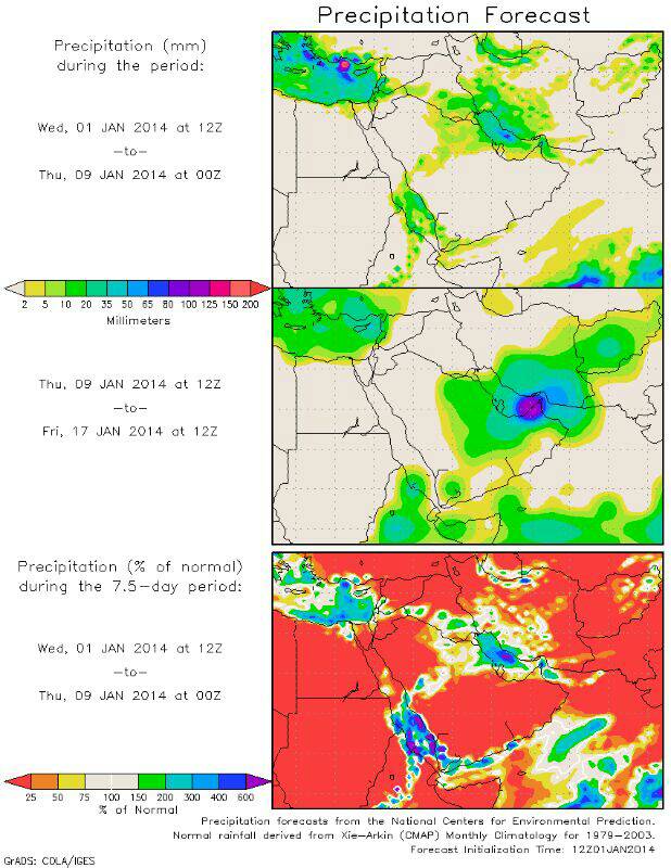 التوقعات المتوسطه المدى هناك حاله وموجه أخرى من نهاية تاريخ 6 وهي افضل من حيث شمولية اﻷمطار قد تستمر ثلاثة أيام .