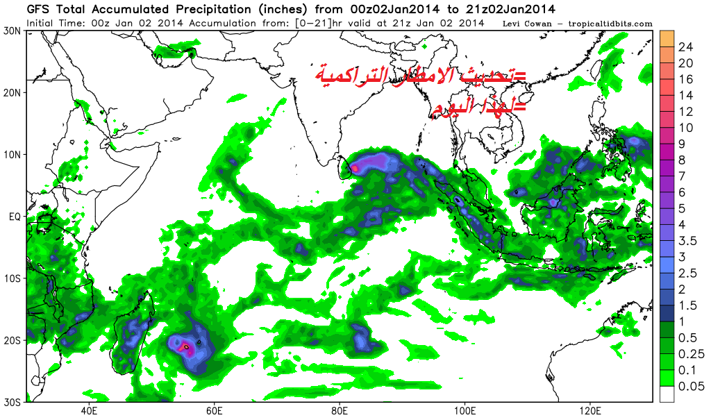 تحديثات جميلة لمعدل الأمطار التراكمي خلال الأيام القادمة