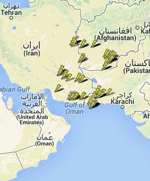النشاط الرعدي على إيران وباكستان وأفغانستان