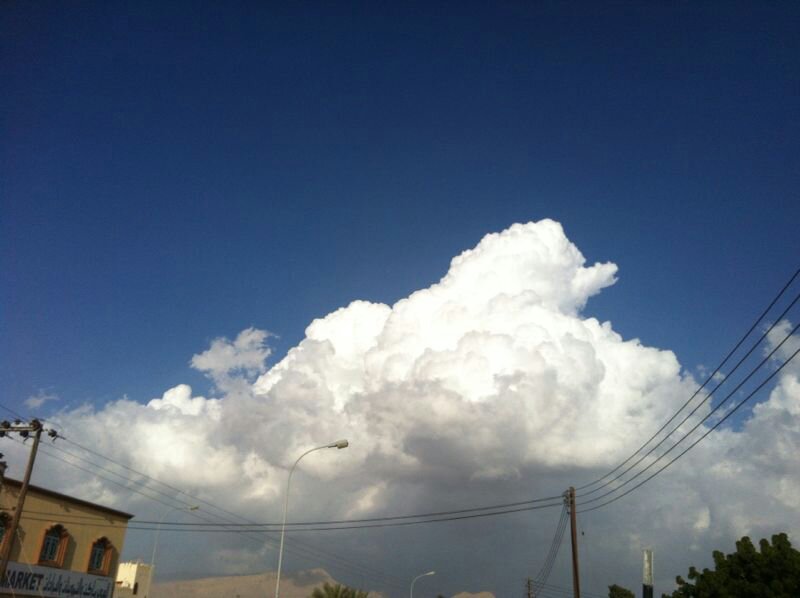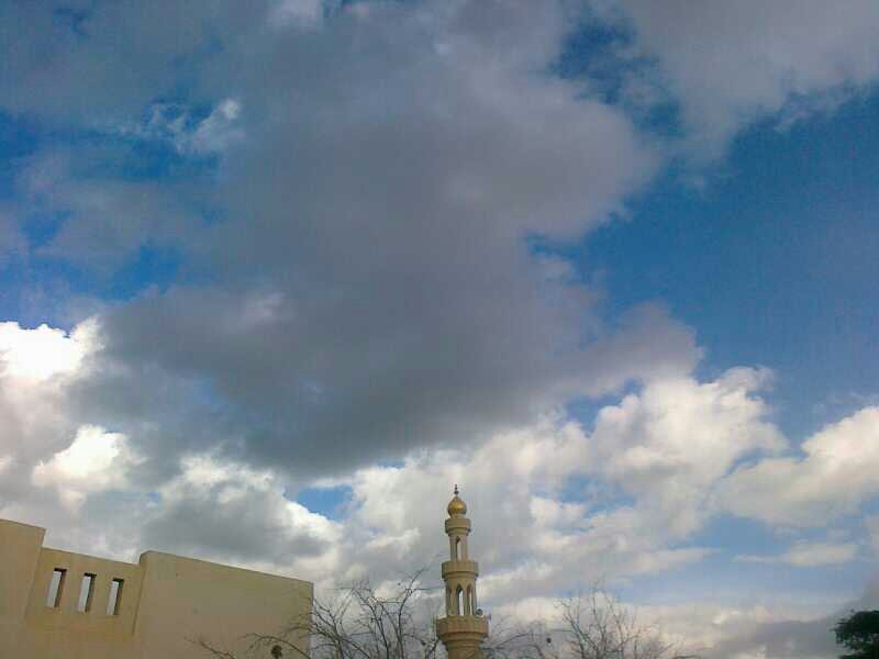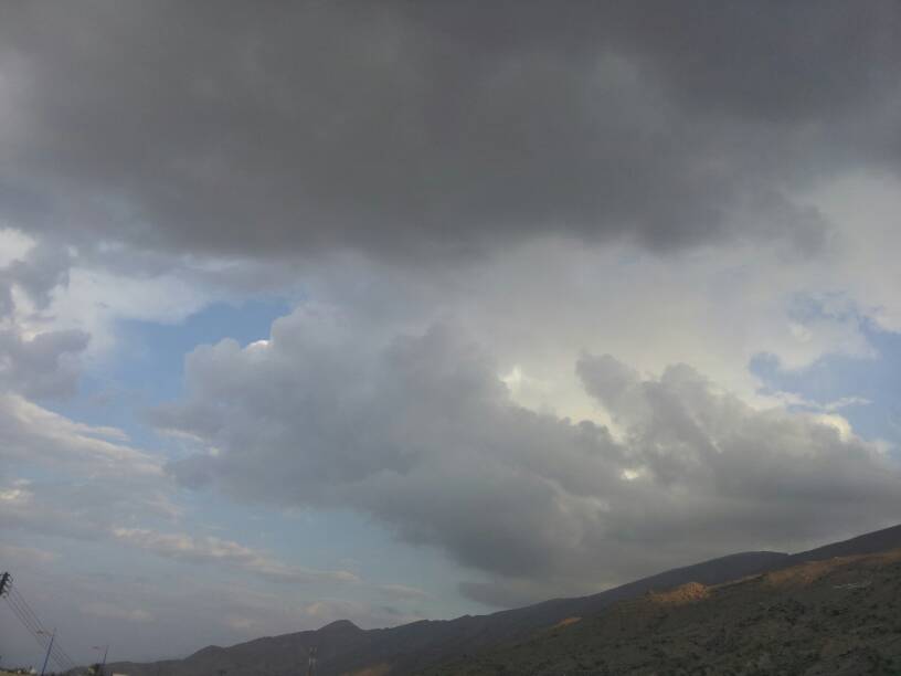 صورة لسحب عصر اليوم بولاية الرستاق حيث تساقط منها رذاذ بسيط
