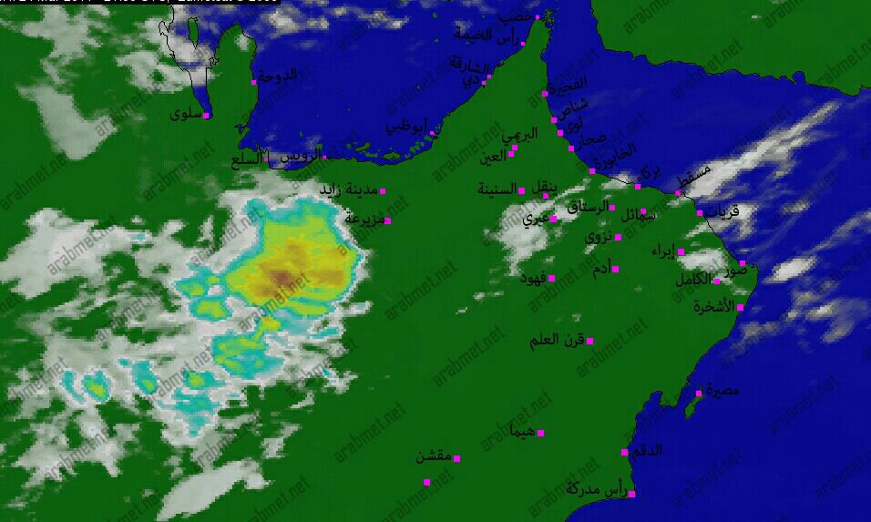الاقمار توضح خلية ركامية رعدية على الحدود الإمارتية السعودية