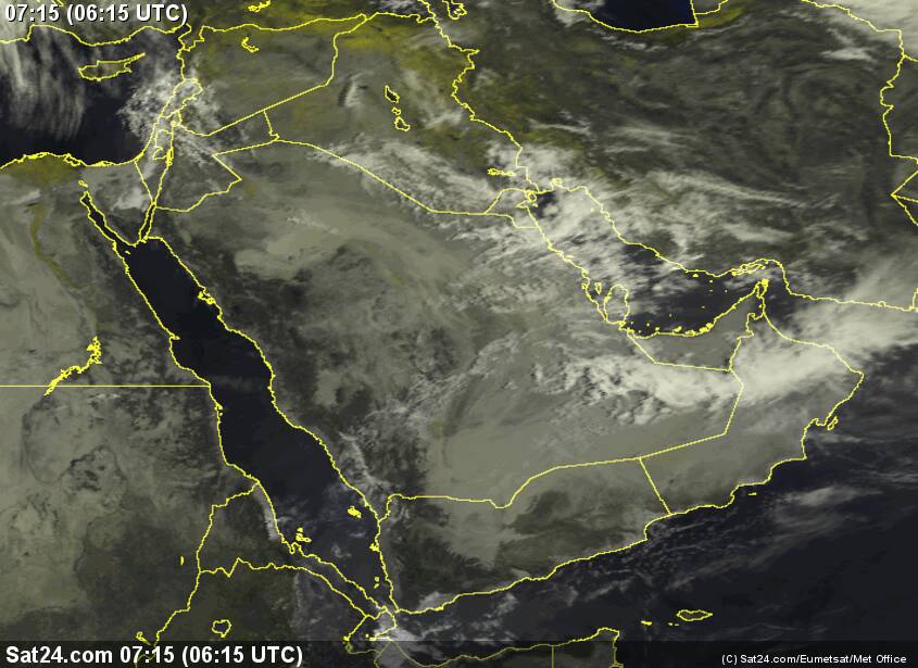 احتمال تأثر الكويت وأجزاء من السعودية خاصة الشرقية ودولة قطر والبحرين والإمارات بالحالة الجوية حيث نلاحظ من خلال الاقمار السحب الماطرة