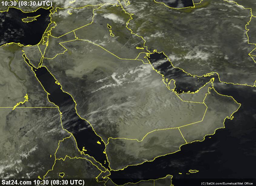 أجواء مستقرة على دول الخليج مع توقعات بتكونات بسيطة متفرقة على جبال حجر عمان بينما تستمر التكونات الماطرة الرعدية على المرتفعات السعودية واليمنية المطلة على البحر الأحمر
