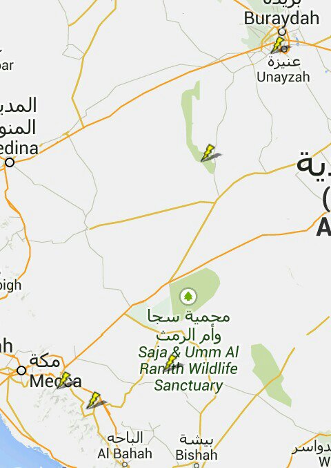 رصد لإشارات البرق بين مكة والباحة وبريدة ومحمية سجا وأم الرمث