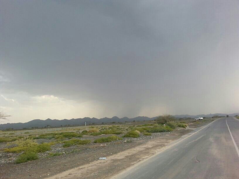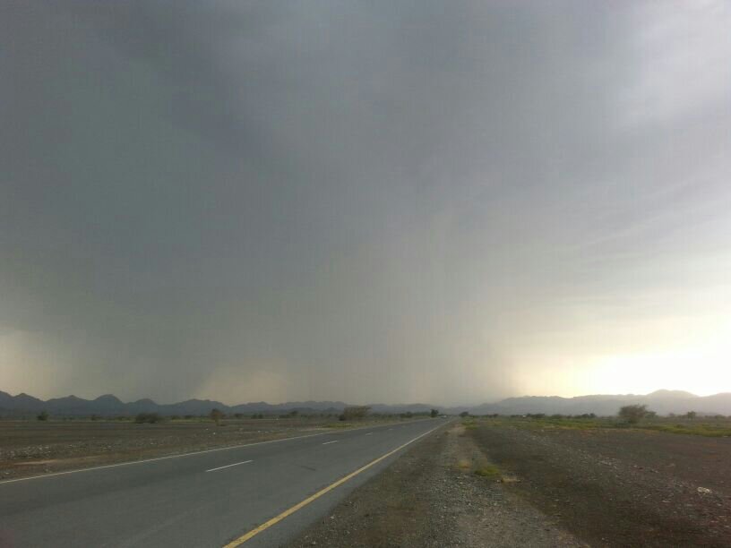 من أمطار الخير اللتي هطلت ع الطريق لي يربط وادي سقط بوادي محرم بولايه سمائل