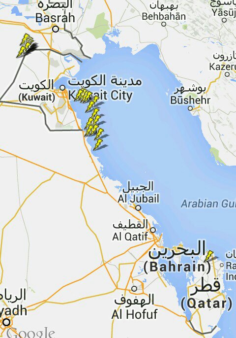 إشارات برق على العراق وقطر وقبالة سواحل الكويت