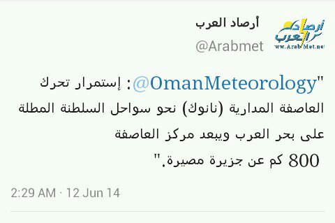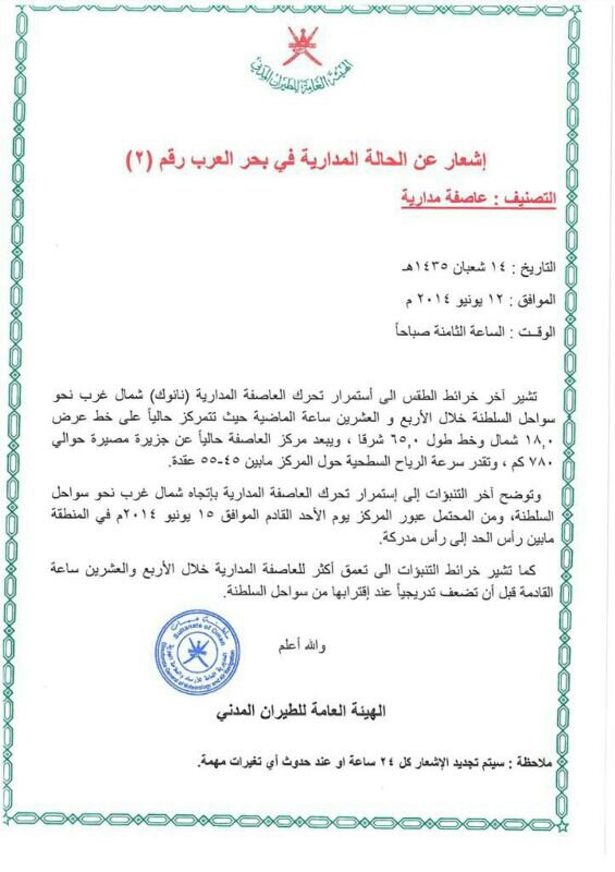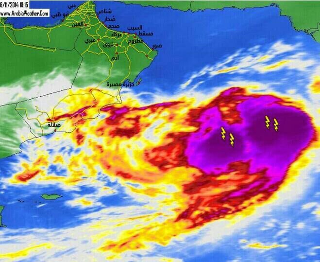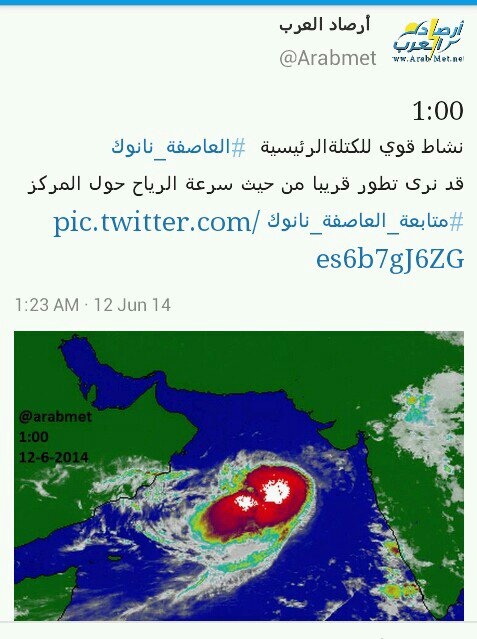 المتابعة اليومية لطقس وأخر تطورات العاصفة المدارية نانوك nanauk ببحر العرب 2014م