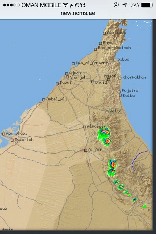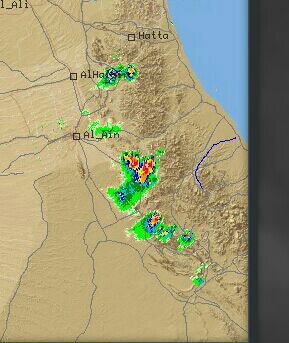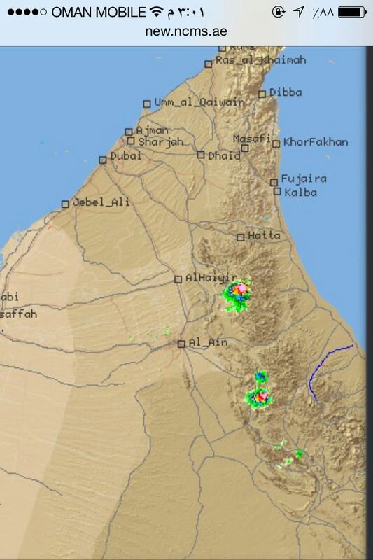 الرادار يرصد امطار شمالي ضنك بطريق ينقل-البريمي