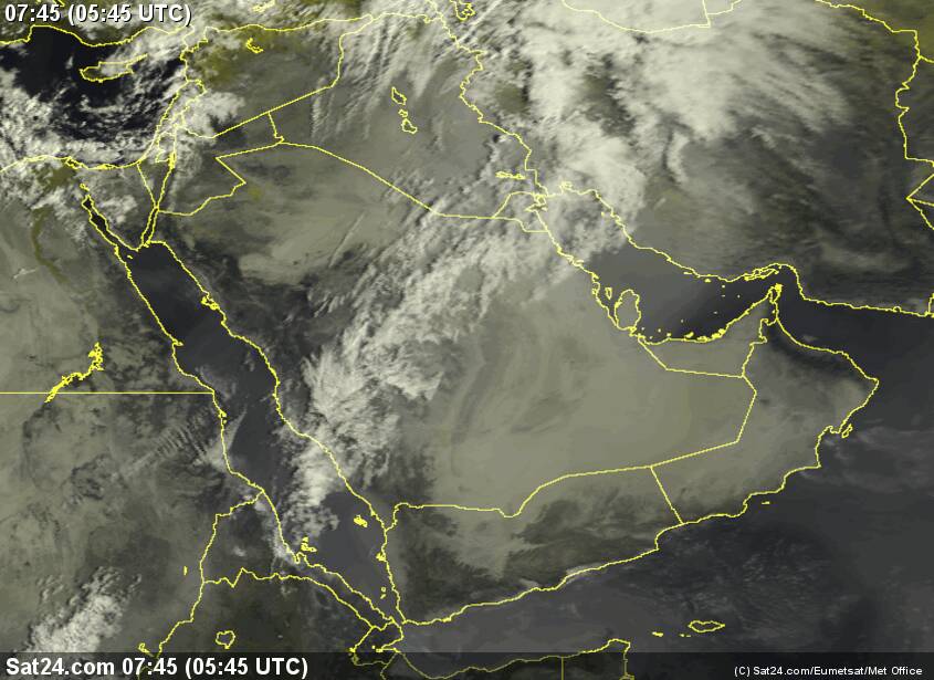 قطر والبحرين الأجواء مستقرة مع احتمال تدفق للسحب العالية يتخللها بعض السحب المتوسطة أحيانا واحتمال بعض الأمطار المتفرقة.