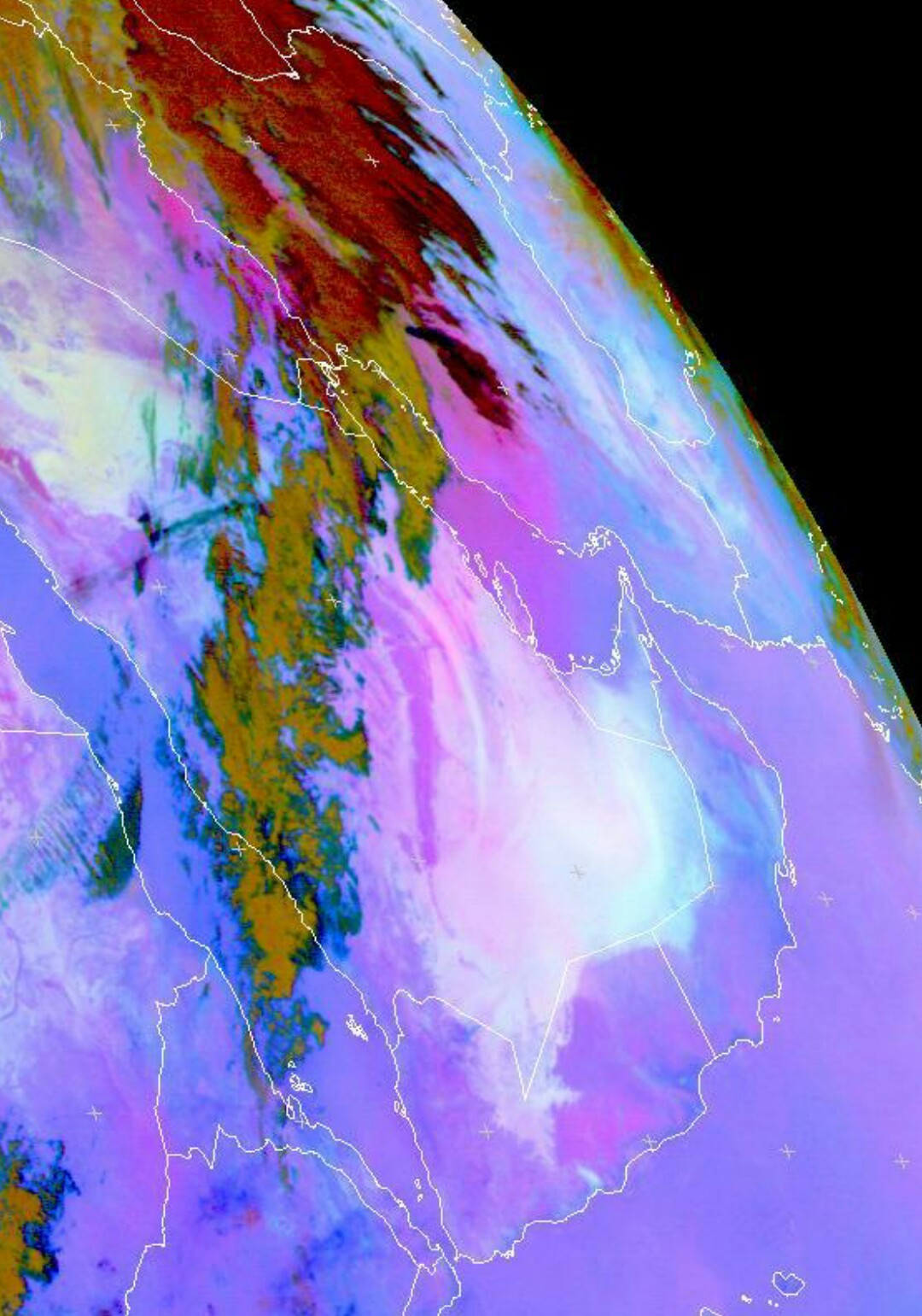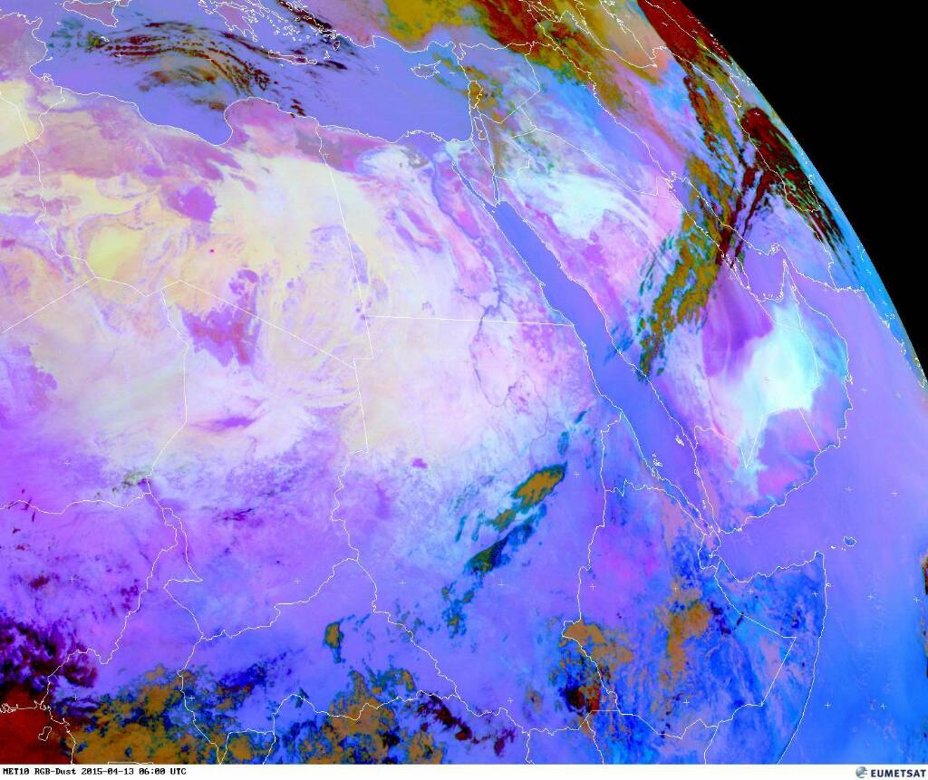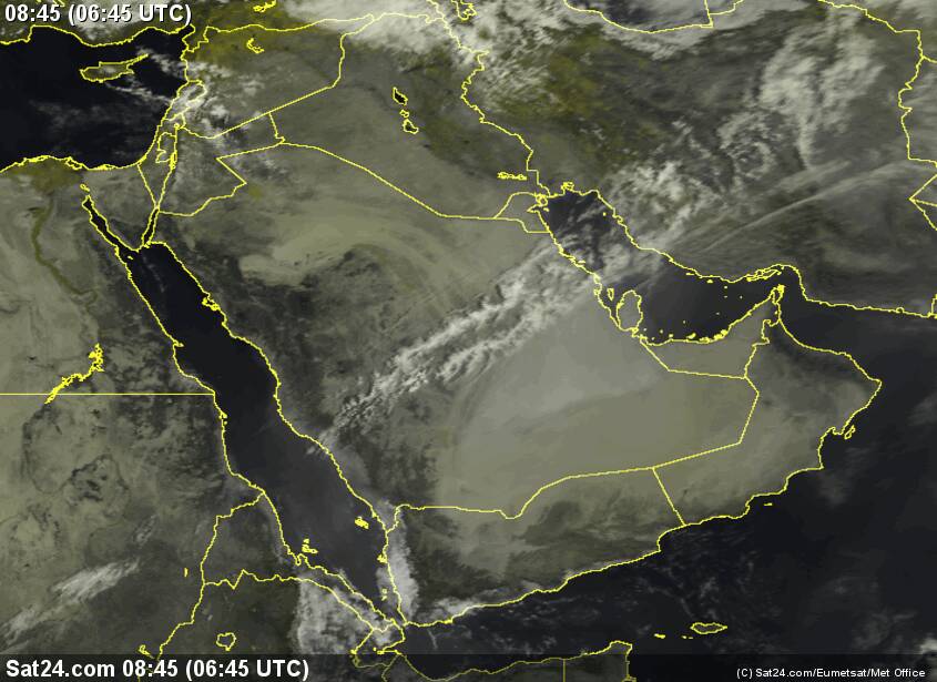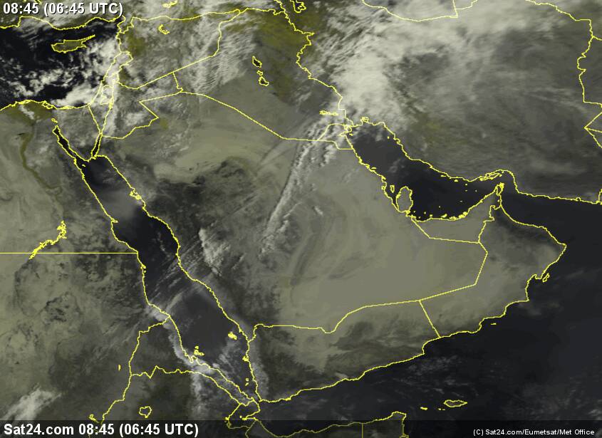 صور الأقمار حاليا من rgp dust واضح غبار بسيط على شمال غرب يتجه للكويت واحتمال تدني نسبي في الروئية الأفقية.