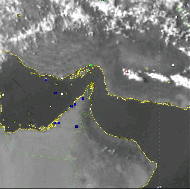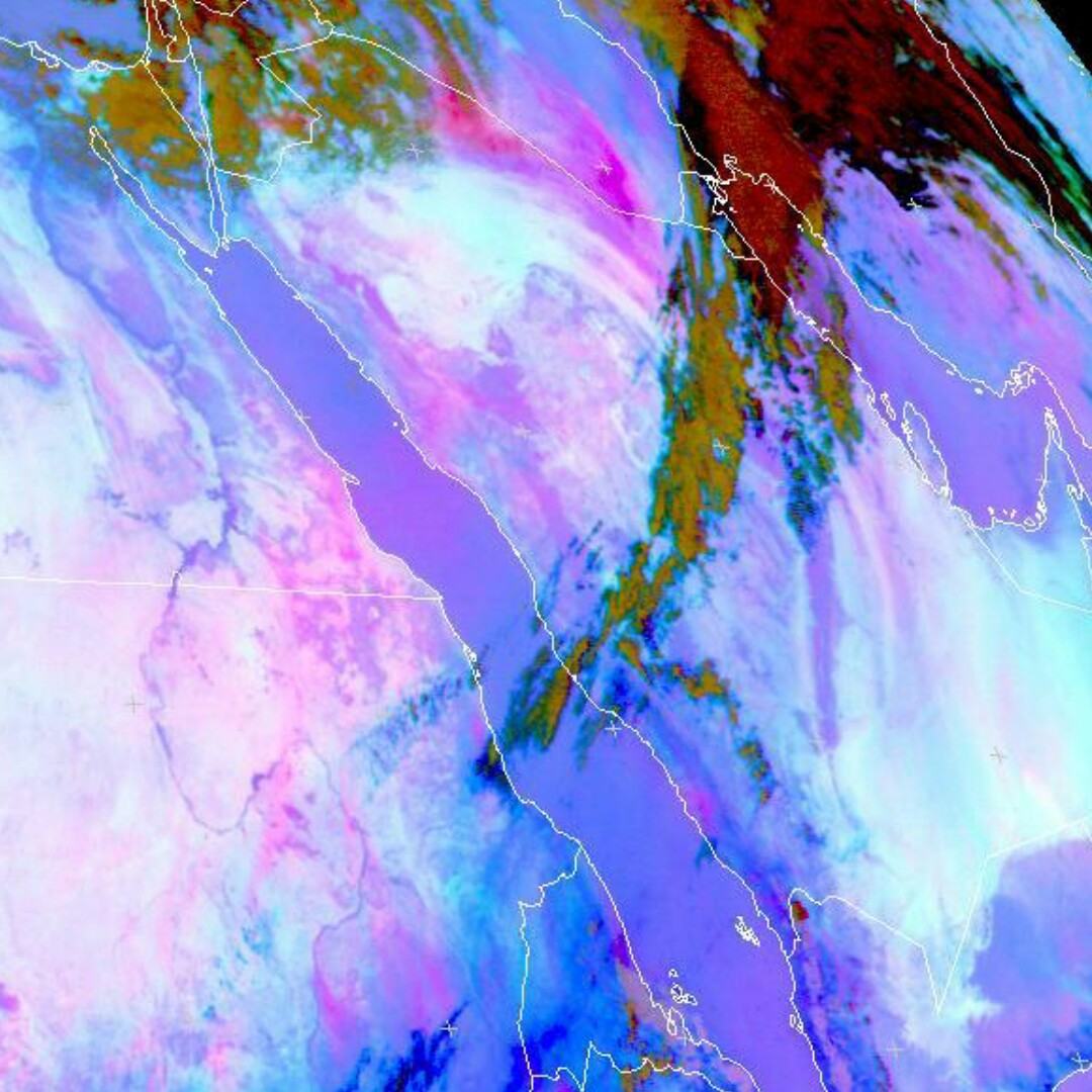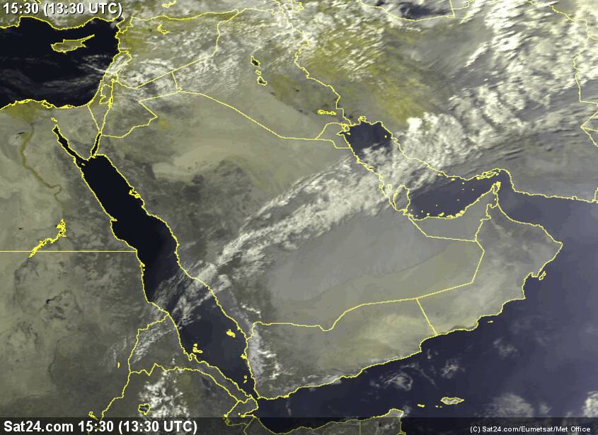 صور الأقمار حاليا من rgp dust واضح انتشار واسع للغبار على الخليج العربي على حسب التوقعات الصباح لا يوجد أي تأثير مباشر للسلطنة ولا الإمارات الغبار ينحسر مع الشمال الشمال الشرقي احتمال تدني نسبي بالرؤية الأفقية على مسندم وشمال الإمارات خلال المساء واحتمال لا يطال مسندم ولا شمال الإمارات.