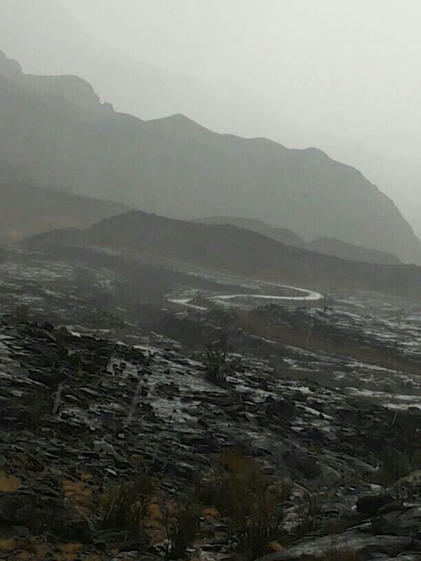 تكونات قوية علي جبال الهجروامطارخفيفة علي اجزاء منها/عبري