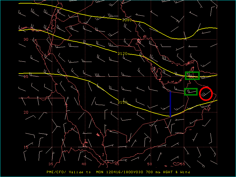 كما نرى تخطت الموجة الإمارات والظاهرة ،معطيه دعم قوي في الشرقية (رياح جنوبية غربية 30 عقدة )