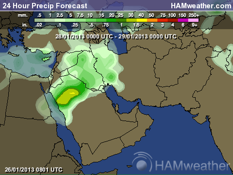 متابعة المنخفض الجوي على الجزيرة العربية وتوقعات الطقس على السلطنة من 27 يناير 2013 م