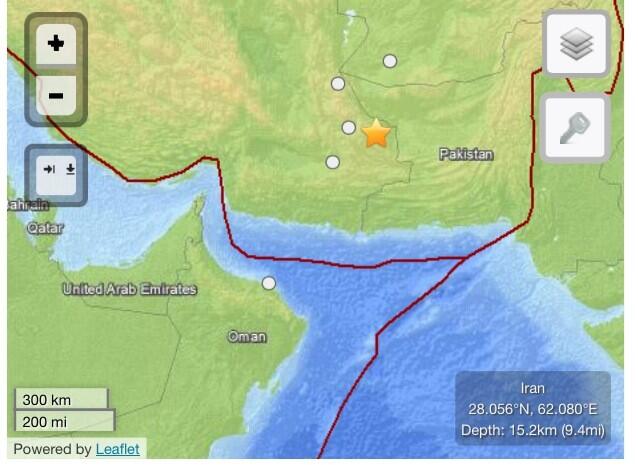 مركز الزلزال يقع شمال شرق عمان ، الحدود الباكستانية الإيرانية