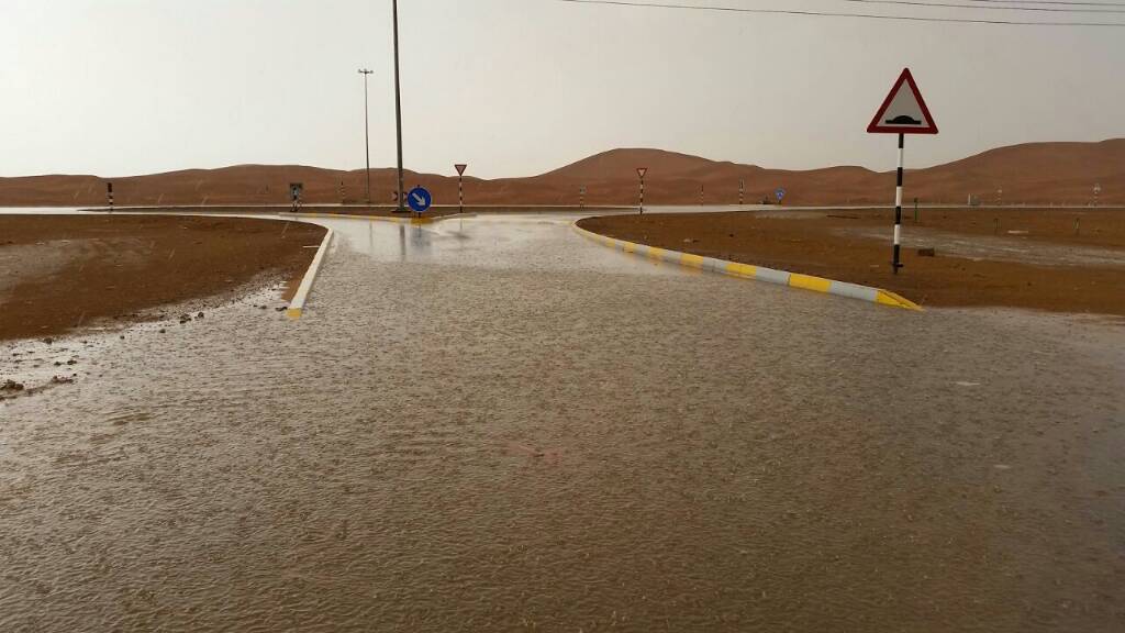 #الإمارات: هطول امطار غزيرة قبل قليل طريق الشاحنات جنوب غرب مدينة العين #مركز_العاصفة