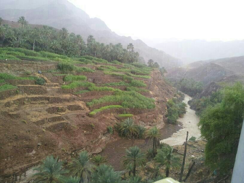 صورة من الأمطار الغزيرة اليوم جهة وادي سميط نزوى