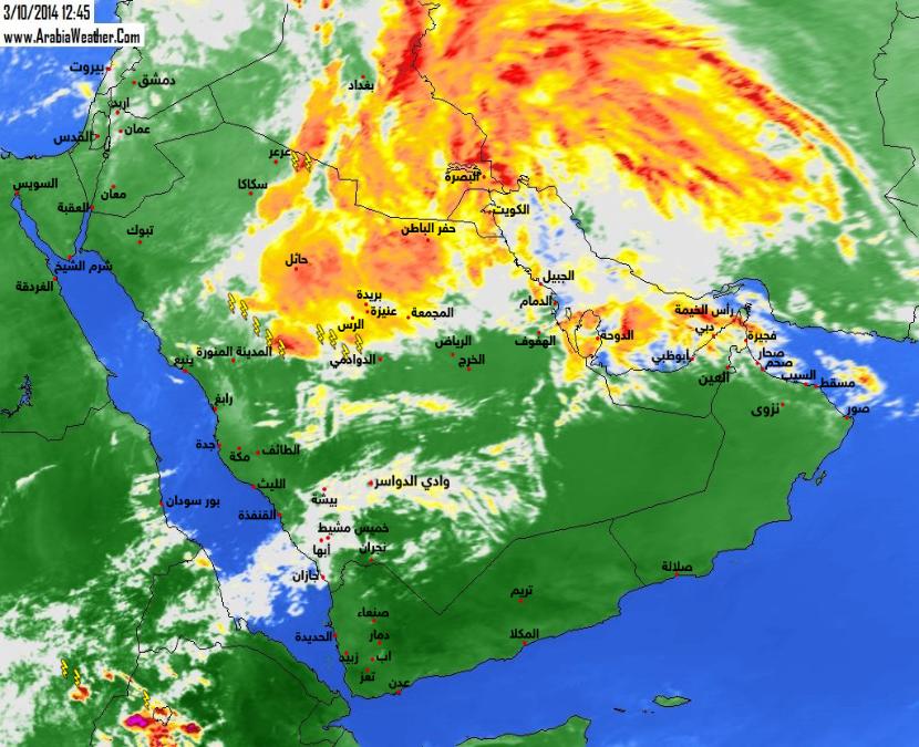 من المتوقع ان تتاثر البلاد بحالة عدم استقرار ابتداءً من يوم الثلاثاء الموافق 11/3/2014 الى يوم الجمعة الموافق 14/3/2014 حيث تبدأ حركة السحب المصحوبة بأمطار متفرقة تؤثر على البلاد، كما من المتوقع أن يزداد تأثير السحب الماطرة مع نهاية الأسبوع حيث تتحول بعضها إلى رعدية أحياناً.