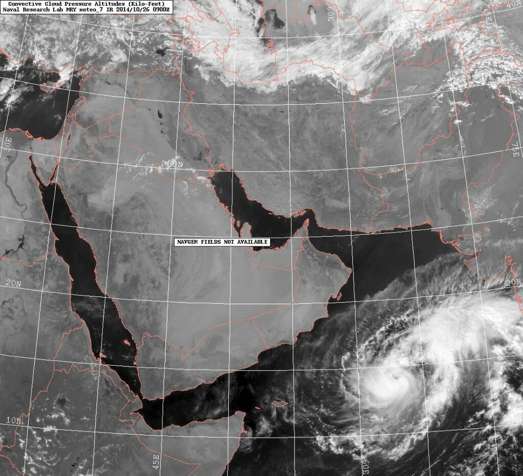 الموضوع: متابعة الإعصار المداري (نيلوفر Nilofar ) في بحر العرب 22/10/2014