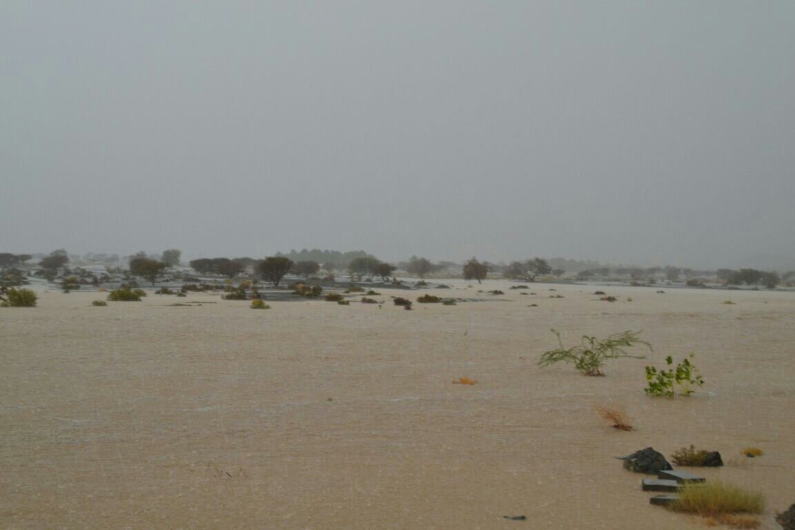 صيع الامطار بين الخفيفه والمتوسطه والغزيره اسفل من القريه مع جريان الشعاب بشكل خفيف ومتوسط .../ينقل