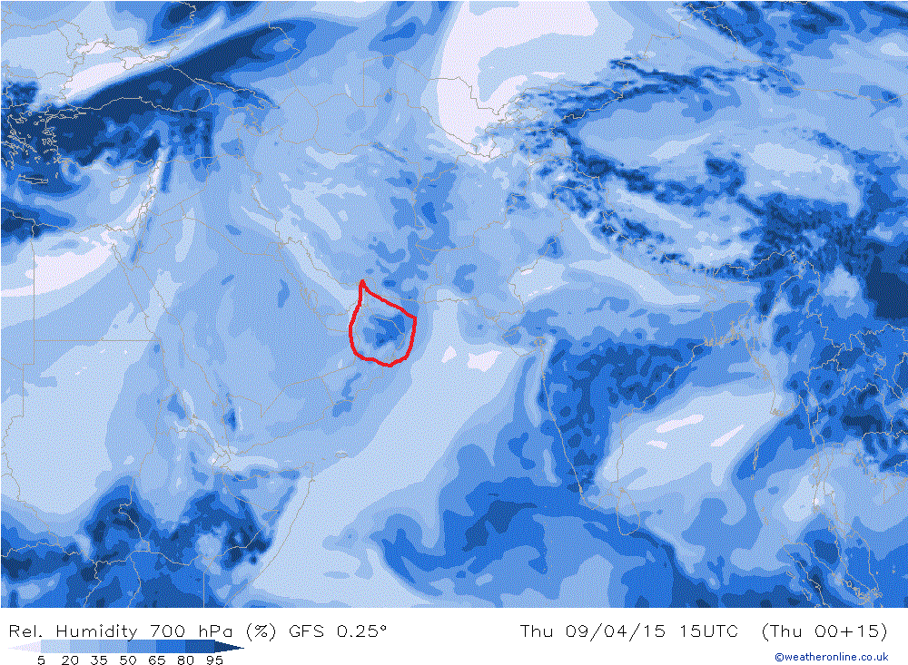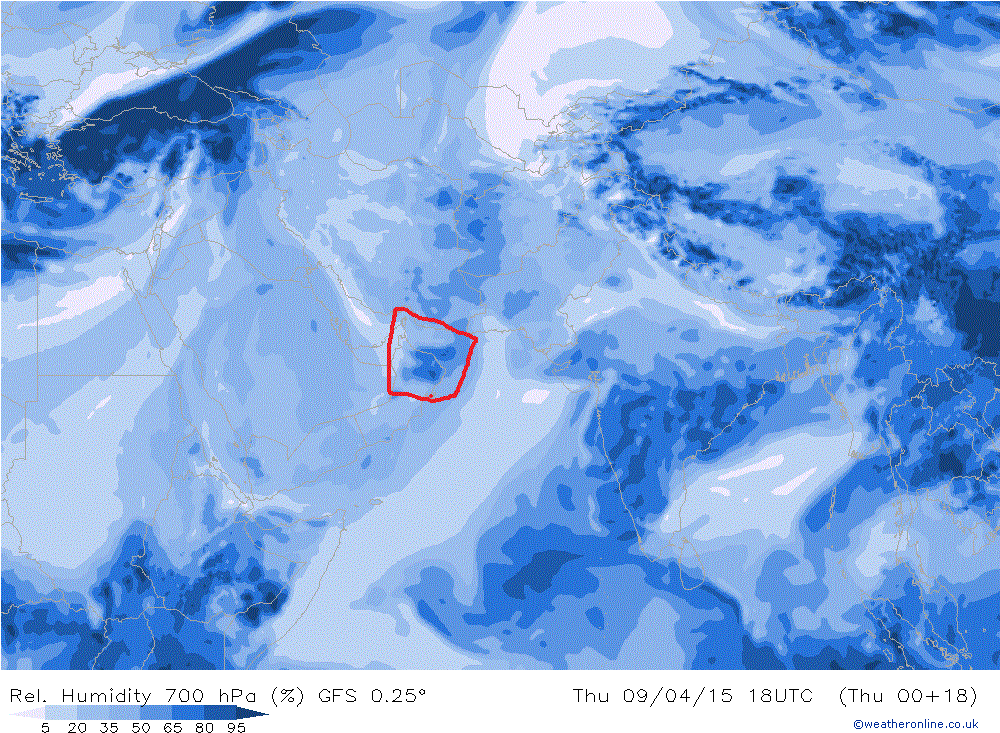 ==الرطوبة على طبقة 700جيده مساء اليوم على جبال الحجر خاصه الاوسط والشرقي في اخر تحديث صباح اليوم==