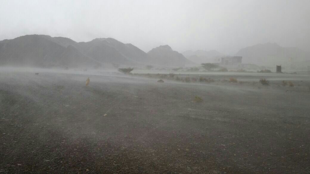 امطار غزيره ورياح هابطة وشلالات تجري ونزول بعض الاودية ..في وادي مستل -نخل