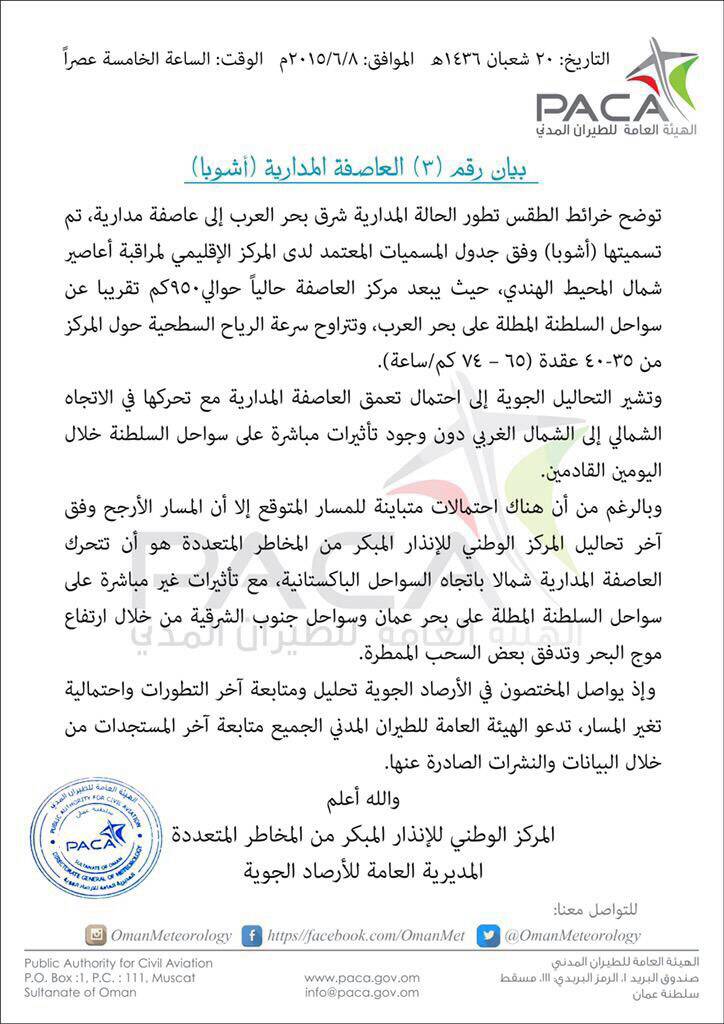 رد: توقعات الطقس على السلطنة والخليج العربي 8/6/2015 ومتابعة العاصفة المدارية أشوبا ashobaa