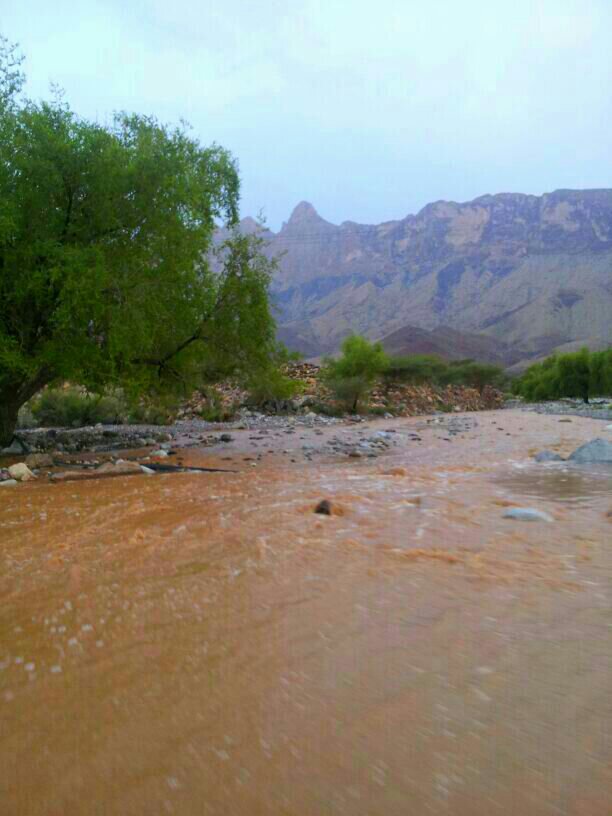 هطلت اليوم امطار غزيره جدا مصحوبه بتساقط حبات البرد و قصف بصواعق ورعود مما ادت الى جريان وادي بتوق ووادي المري