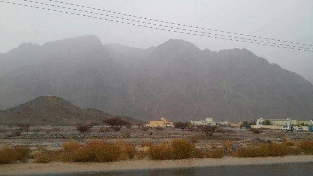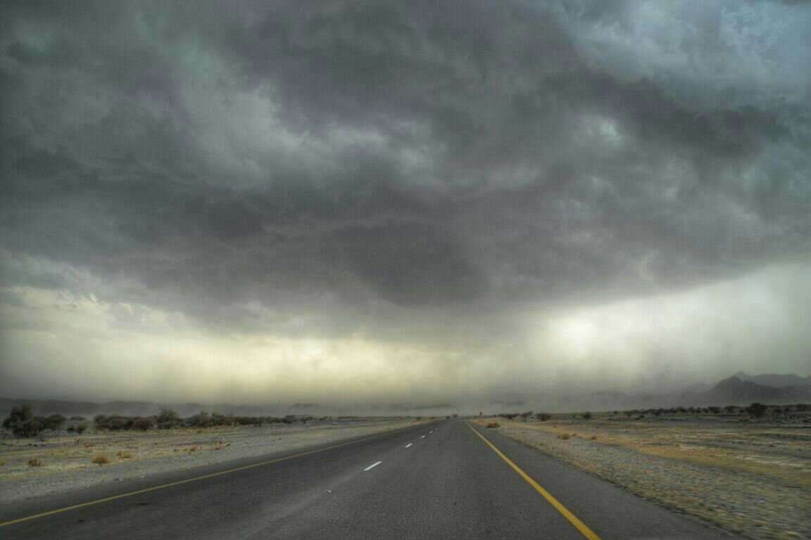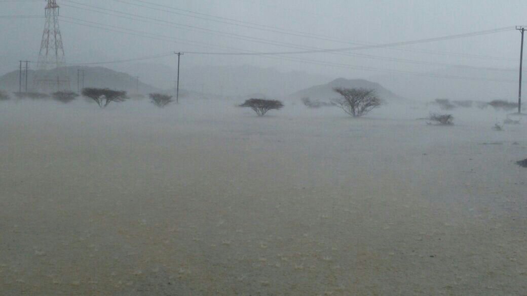 امطار غزيره جدا ورياح هابطه وبعض مركبات تتوقف ع اطراف شارع...طريق نخل..العوابي