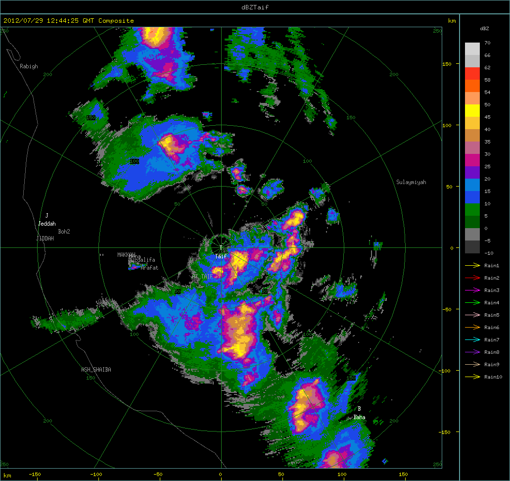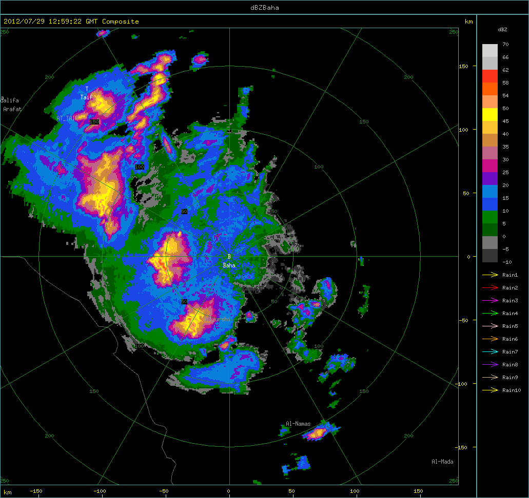 رادار الباحة ويظهر امطار غزيره قد تكون مصحوبة بحبات البرد